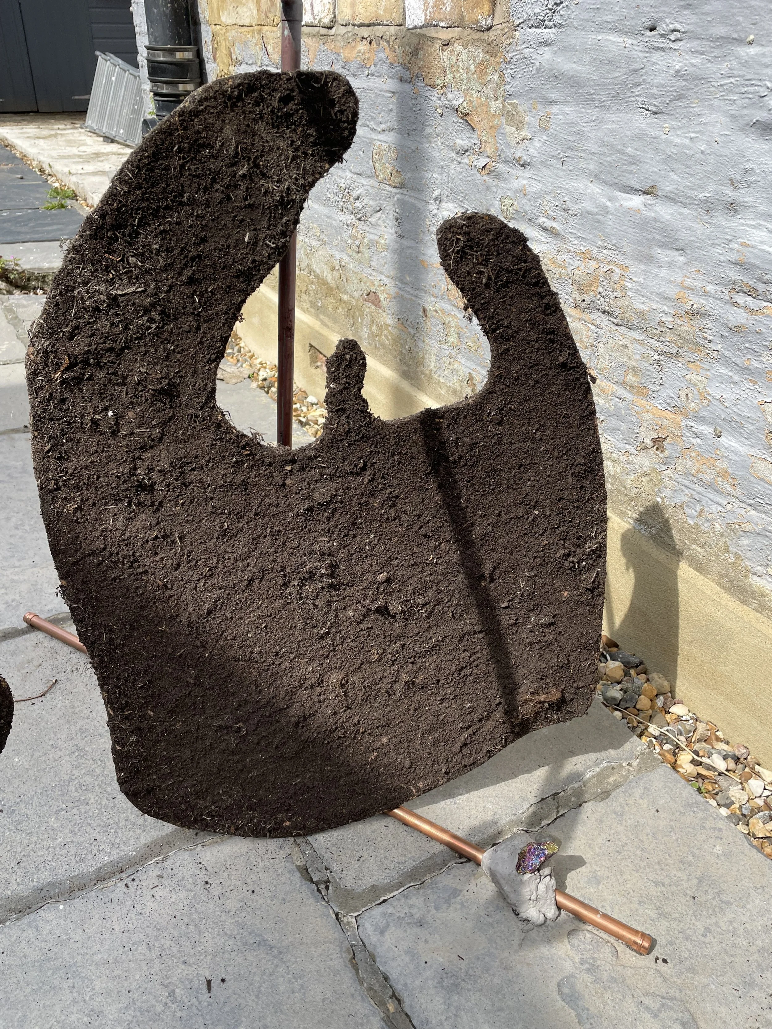 Copper, earth, wood, clip, clay, peacock ore (115 x 88 x 88cm) Shown at All Mouth No Trousers, Three Rooms Gallery, London UK, organised by the icing room