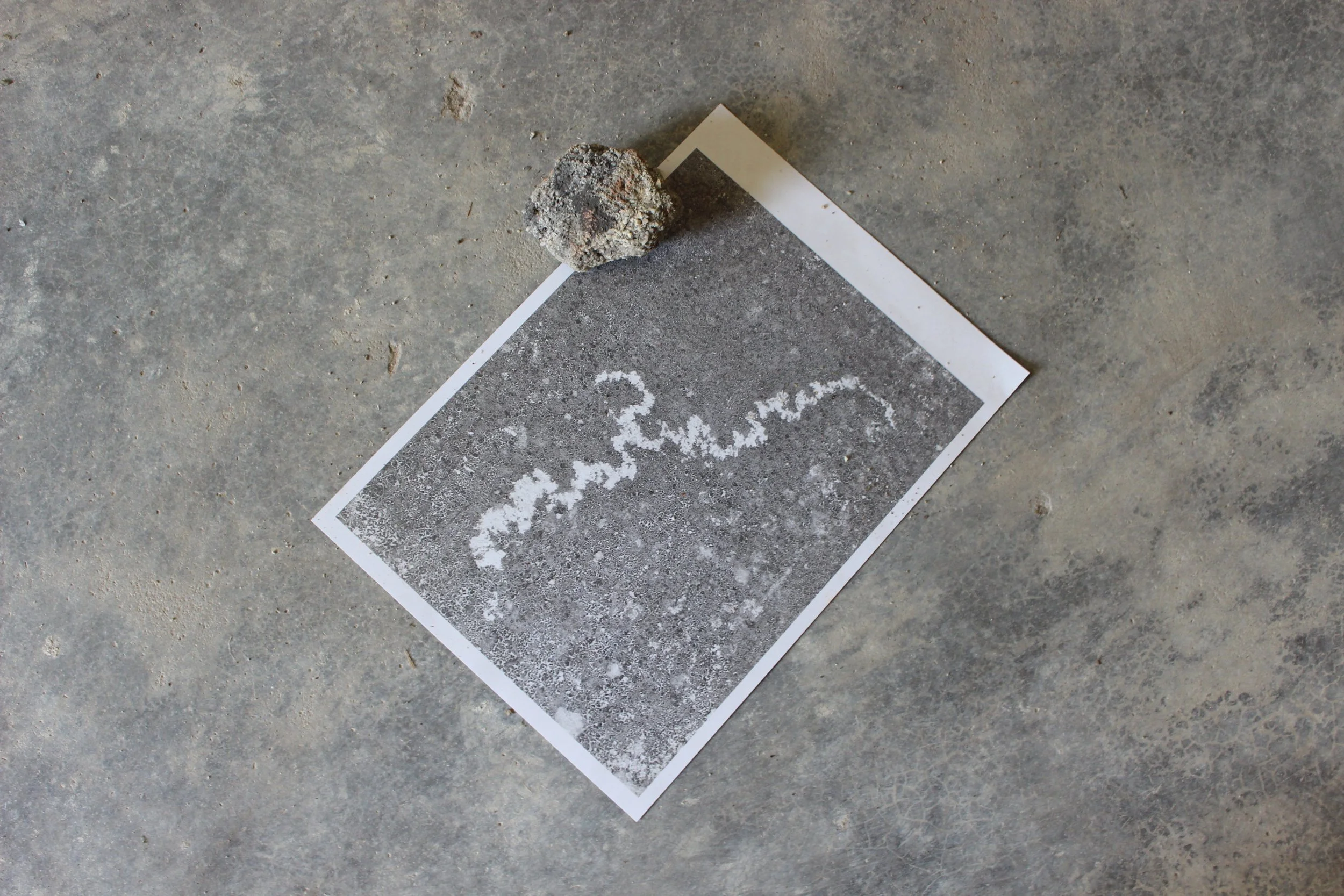 During a residency at AZAN (Mira-Sintra Meleças, Portugal) I became preoccupied by a lichen growth that had dried out on the studio wall (lichen hibernates during the summer months), and the presence of a team of builders roofing the space next to the studio. It made me think about things about to get wet, the moss ready to start growing again with the rise in humidity, the open space being covered to protect against future rain. Echoing some of the gestures of lifting, throwing, setting, mixing and pouring from the builders, I started casting using industrial materials, incorporating found objects from the surrounding landscape. In the last weeks of the residency it was very hot, and the things I was making kept breaking and cracking...everything dried too quickly for me to control. Playing with this imminent change of state, the final installation suggests a stage set waiting - or even desperate – for the rain.